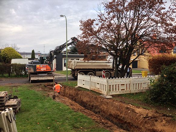 - Erdarbeiten für Versorgungsleitungen Gas / Strom / Beleuchtung / Telekom / Fernsehkabel